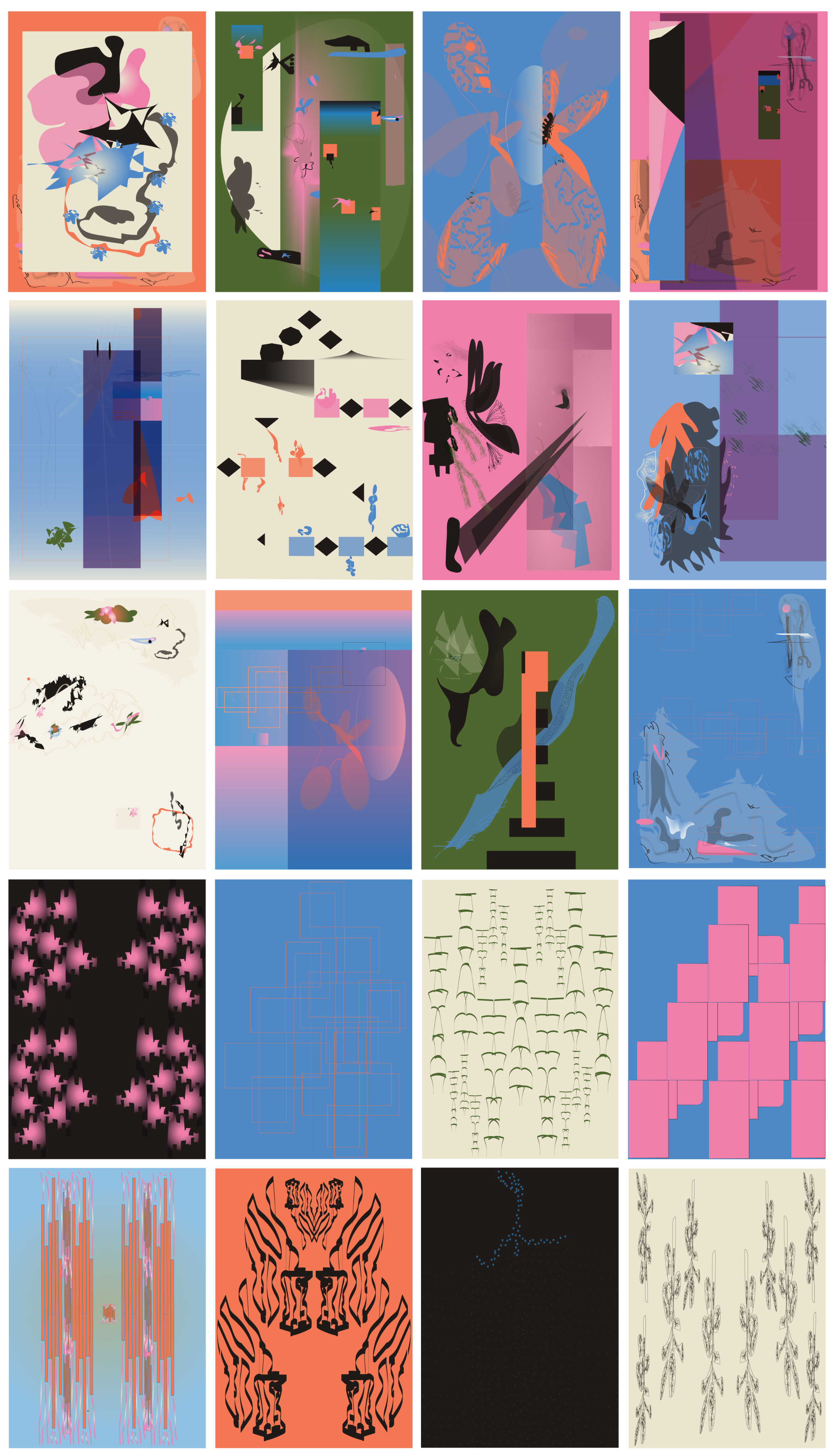 This project was an exploration of different types of graphic compositions. Through shapes, transparencies, colors, and textures, a universe was created that represents the infinite ways of dreaming, similar to the imagination of a child at play.